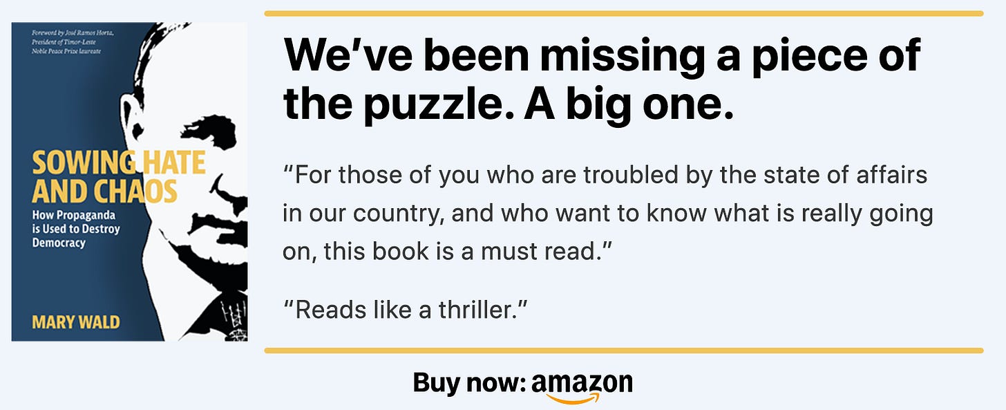 I began researching and writing Sowing Hate and Chaos when, in the middle of another writing project, I ran across a “handbook” outlining a specific form of propaganda intended to pit citizens against citizens, create hatred and division, and ultimately, to collapse democracies. It was written 50 years ago by a noted French neuropsychiatrist. He laid it out in three phases.